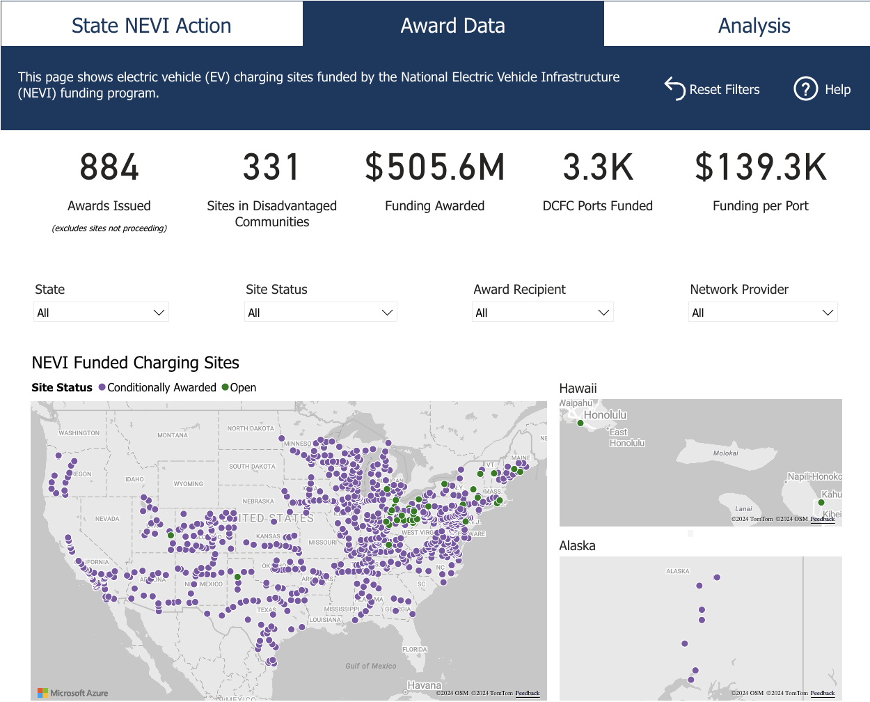 NASEO, AASHTO, Atlas Public Policy, and the Joint Office of Energy and Transportation Launch the NEVI Awards Dashboard