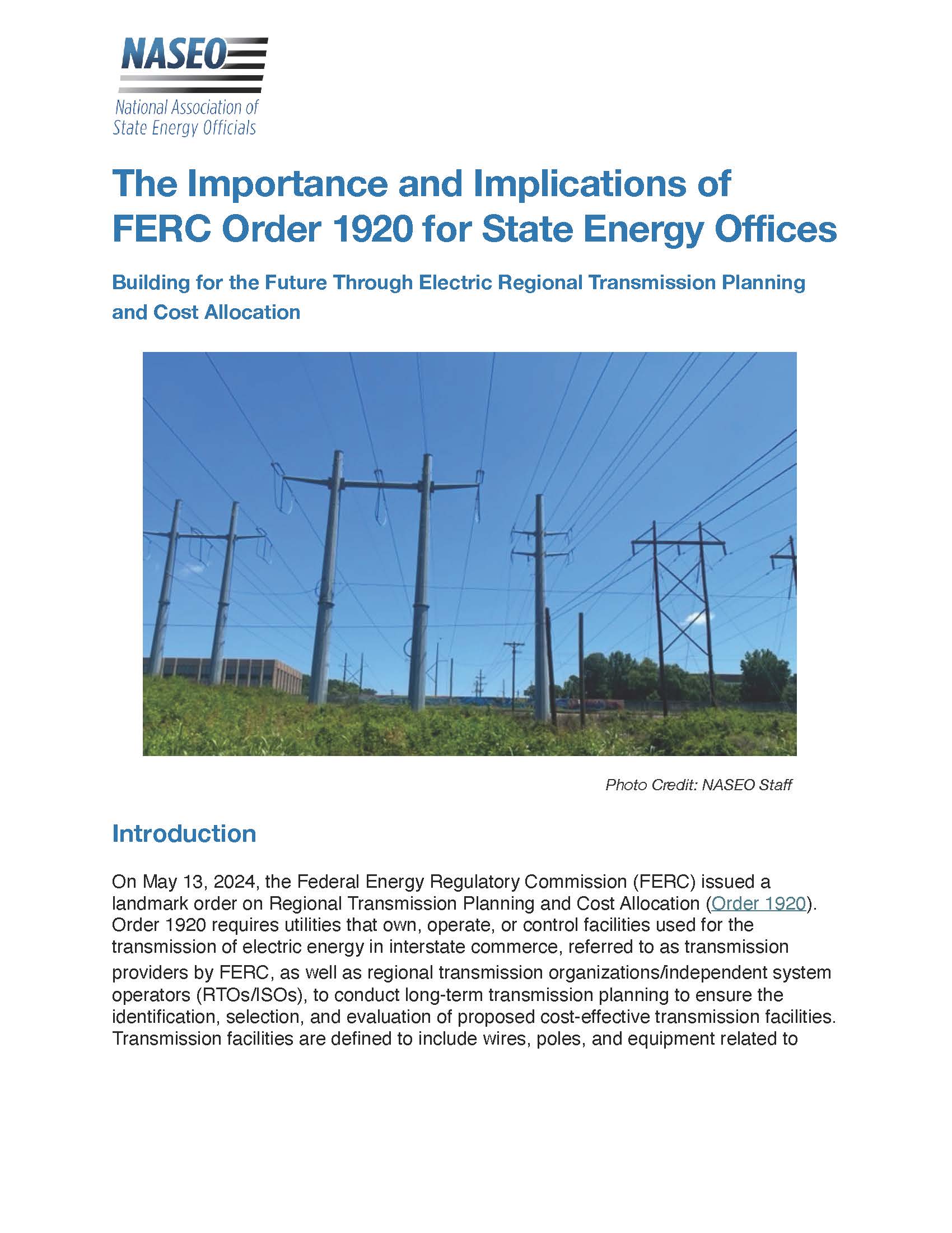 New NASEO Report on the Importance and Implications of FERC Order 1920 for State Energy Offices